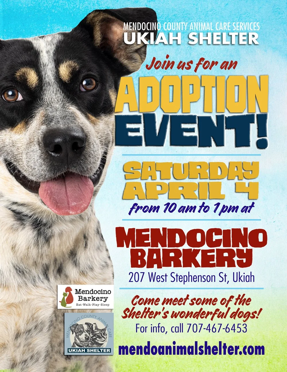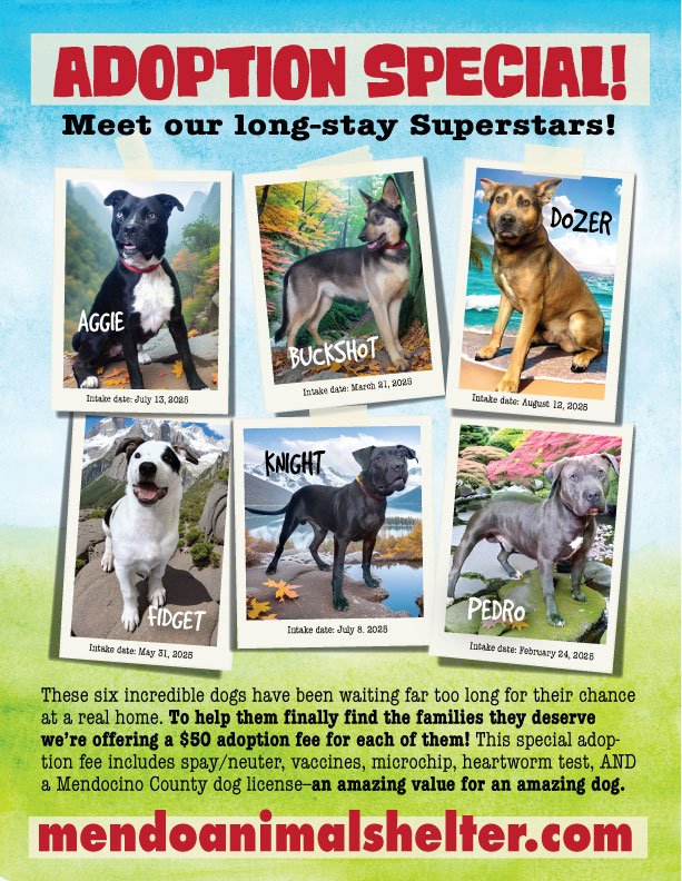 •MARK YOUR CALENDARS FOR THIS SATURDAY’S ADOPTION EVENT! Join us at THE BARKERY in downtown Ukiah! CLICK THE FLIER ABOVE FOR DETAILS!